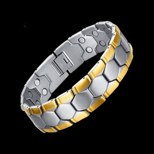 Premium Silver Gold Titanium Magnetic Therapy Bracelet - Double row Magnets