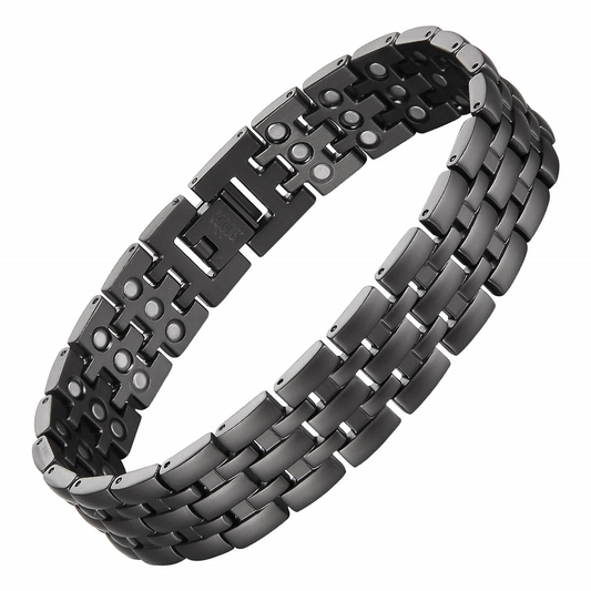 Stainless Steel Black 2-Row Magnetic Therapy Bracelet