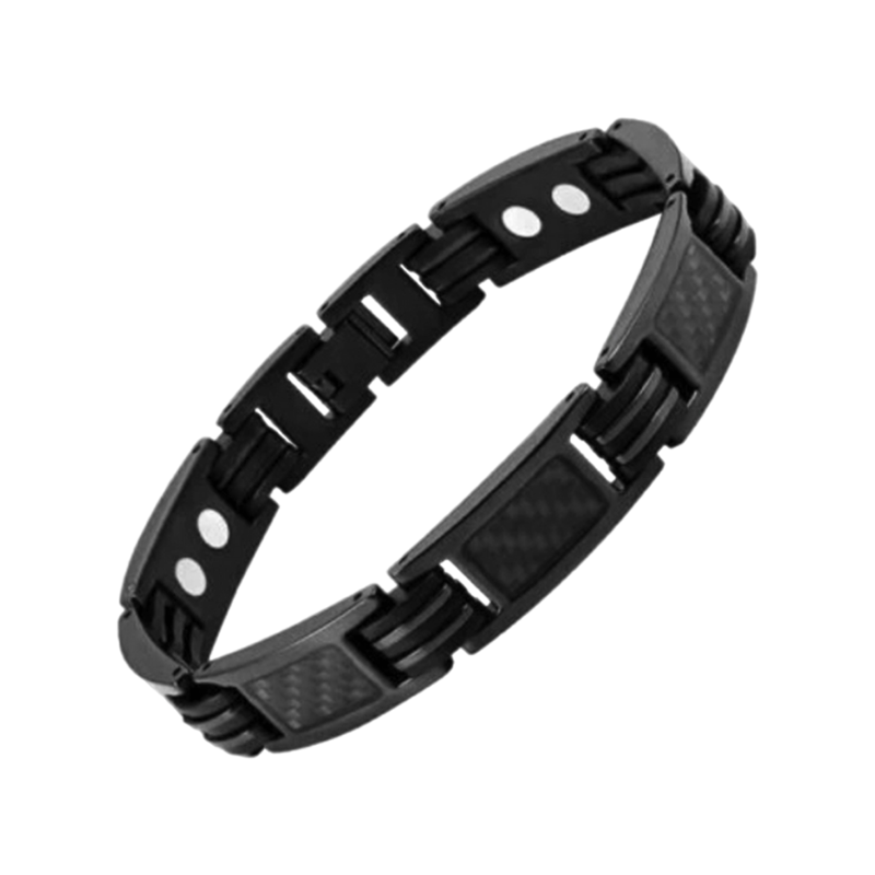 Enjoy comfort, style, and wellness with this high-quality 316L stainless steel bracelet. Designed for everyday wear, it combines a sleek, polished finish with striking black carbon fibre inlays and powerful magnetic therapy.