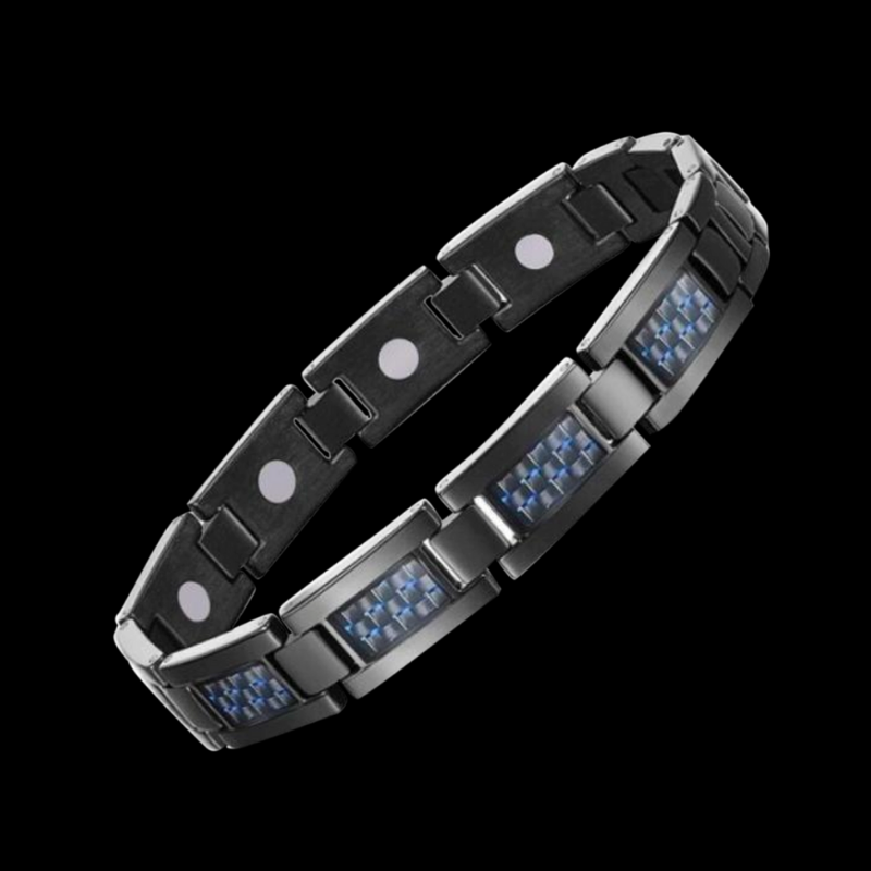 Black Stainless Steel Magnetic Therapy Bracelet – Blue Fiber Inlay