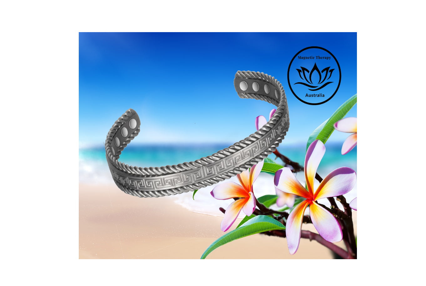 Our Pure Copper Ancient Greek Key Bracelet Coated with Silver Plating is for those liking Silver Grey Finish and also the benefits of Copper. Copper and Magnets have been for centuries assisting people with their pain by helping blood flow adding better circulation to Areas needed - In Ancient Times Spiritual Energy was Produced by Copper - Magnetic Therapy at Work