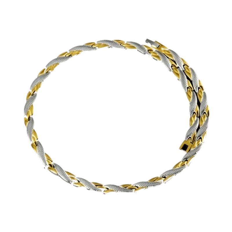 Incorporating advanced magnetic therapy, this necklace offers effective pain relief through its 4-in-1 elements embedded on the underside. These therapeutic features include: